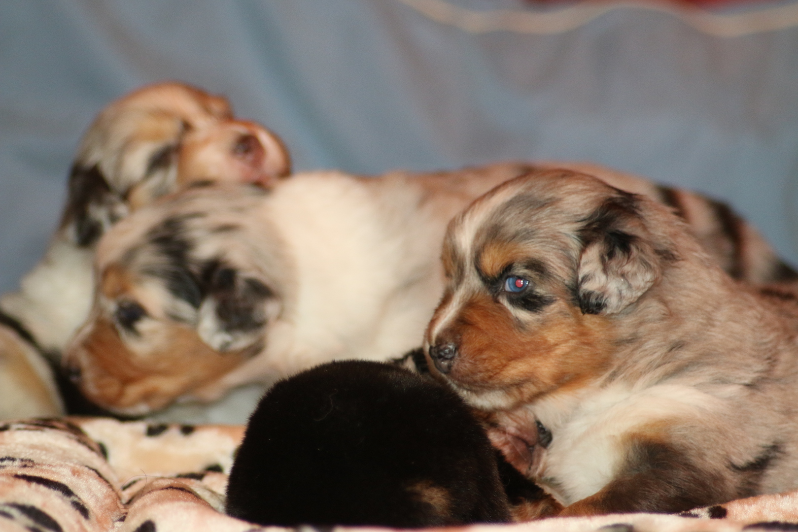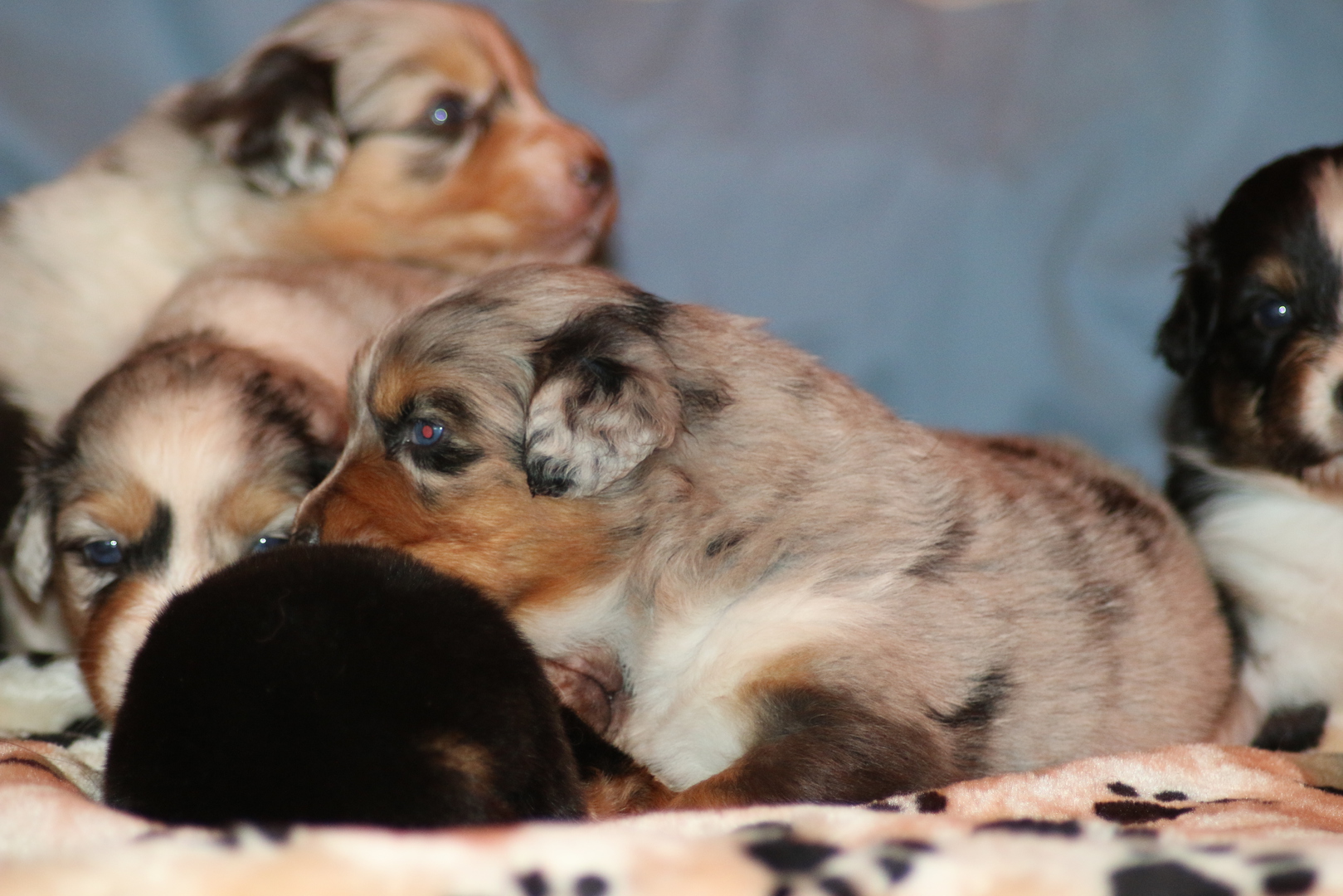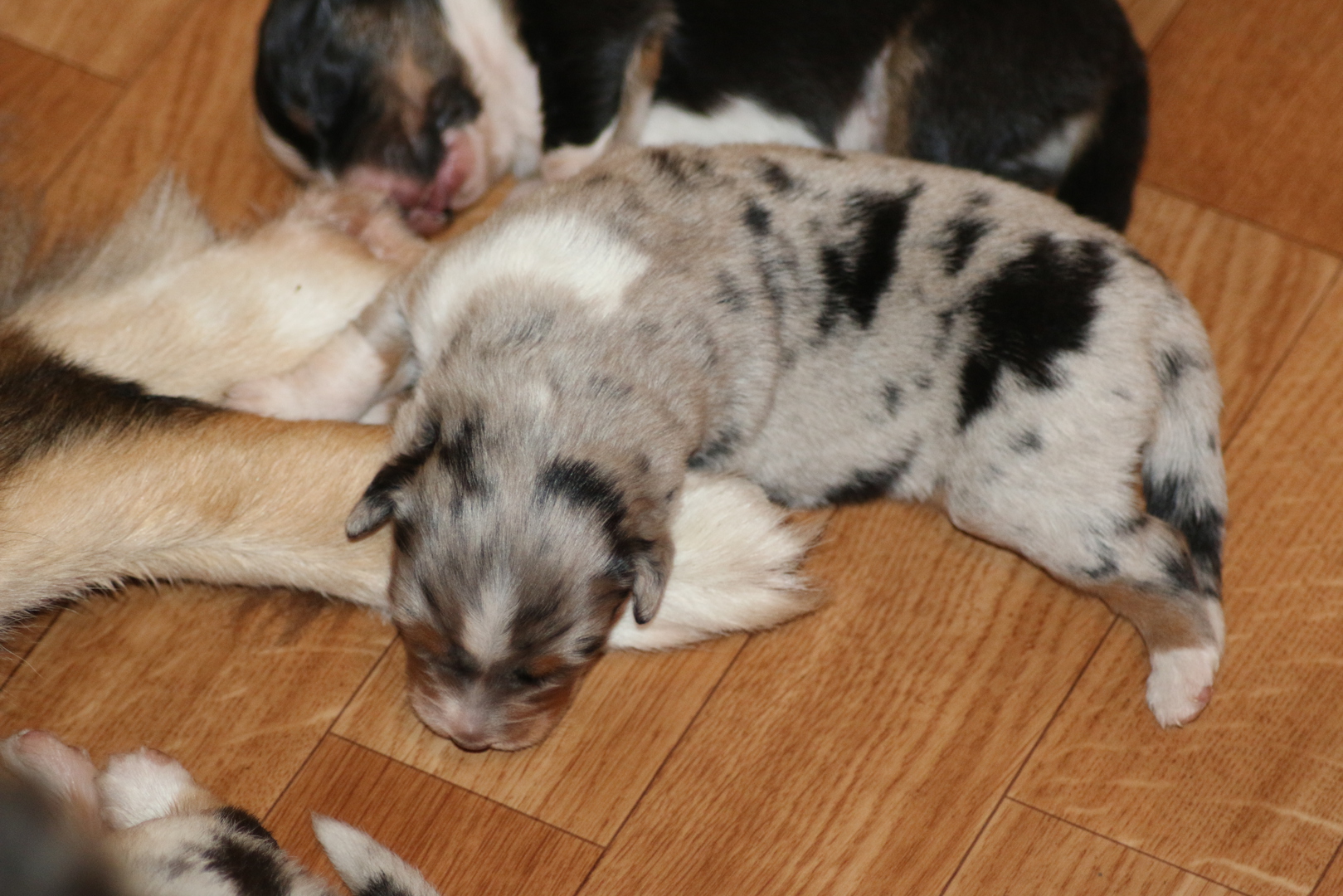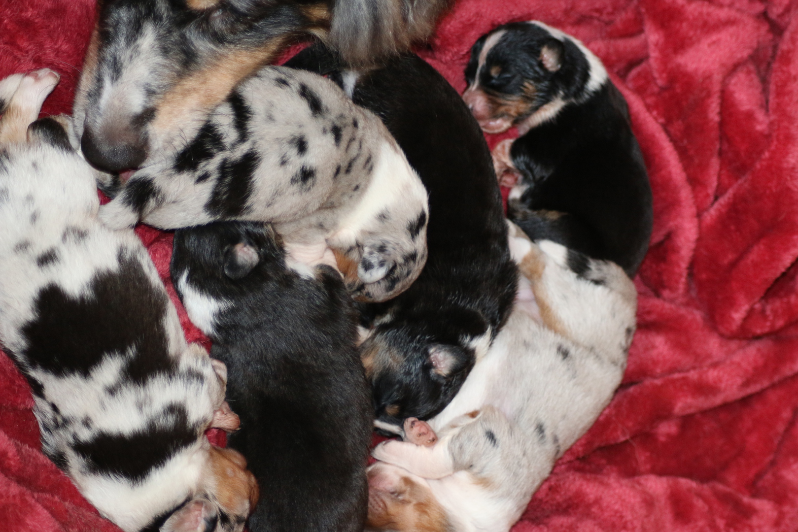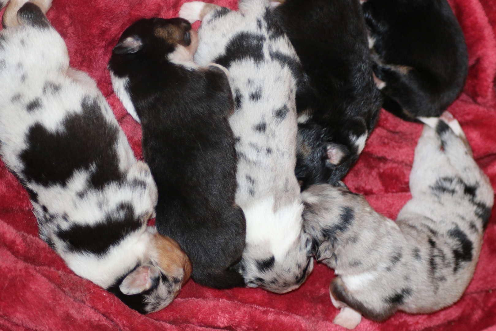Heute wurden die ersten Bilder eingestellt, in den ersten Tagen ist es immer ganz schön die Mutter mit den Kleinen nicht allzu viel zu stören so dass auch heute erst das erste grosse Shooting stattfand lach.Gar nicht so einfach die wuseln schon ganz schön rum. Dieser Wurf ist einer der kräftigsten so war der schwerste Welpe bei der Geburt schon 480 g (Bea)