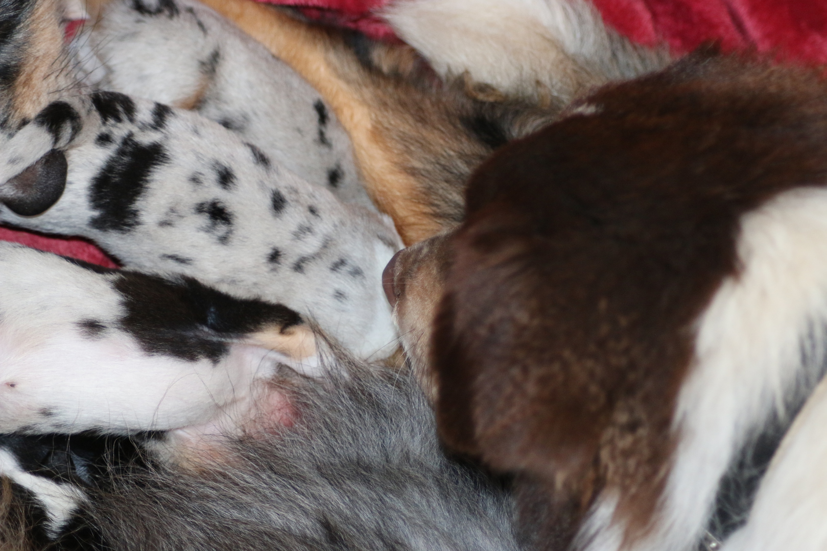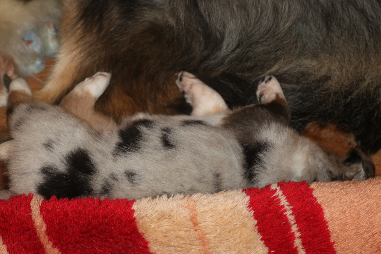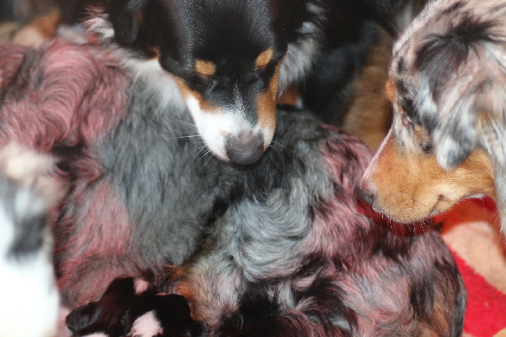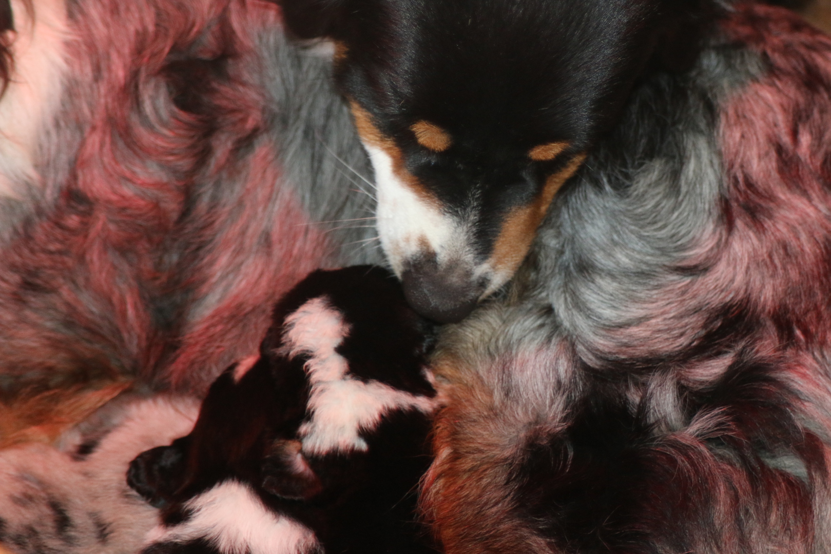 die Kleinen sind wieder mal zauberhaft , Shani unsere Omi ;-) ist heute auch in die Wurfkiste und meinte es wären ihre . Shaarena nimmt es mit Gelassenheit, und so haben die Zwei heute morgen gemeinsame Brutpflege gemacht . Praktisch wenn man da so Helfer hat. So konnte Shaarena auch mal eine kurze Auszeit nehmen und ein Nickerchen auf ihrem großen Sohn machen .