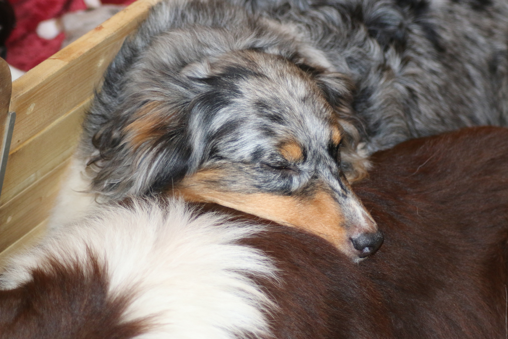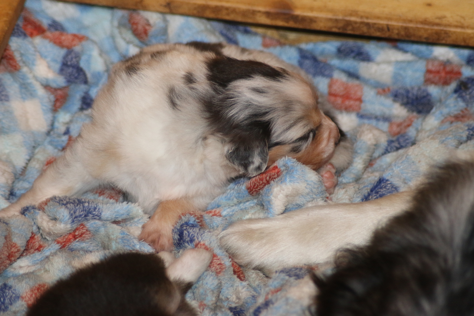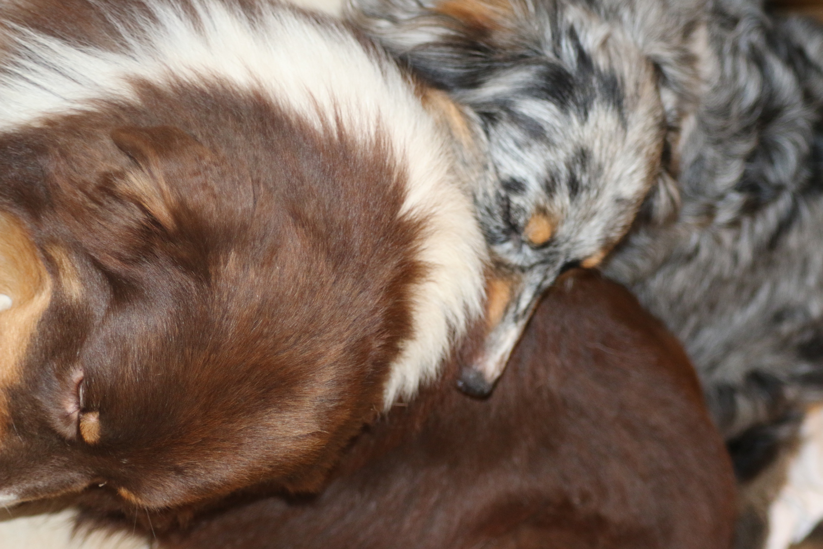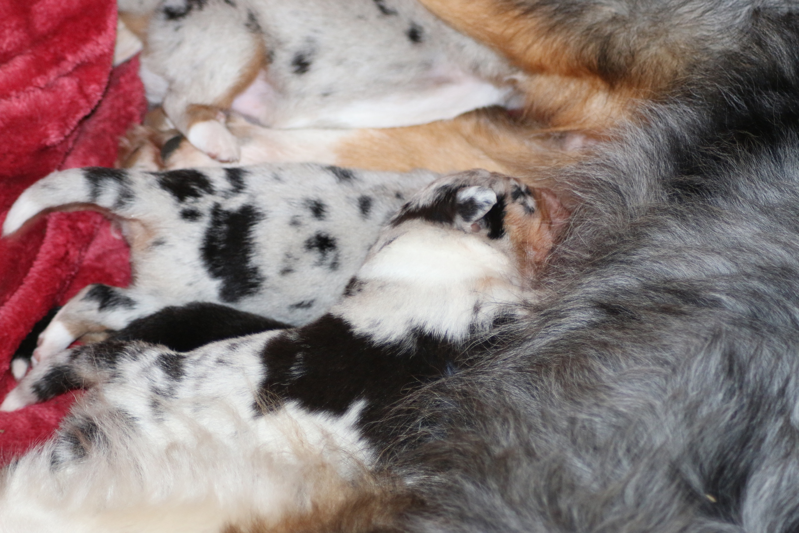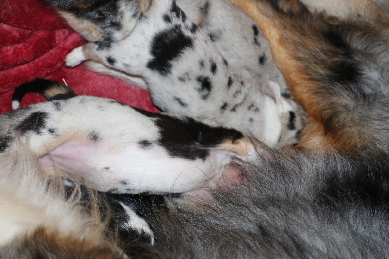 die Kleinen sind wieder mal zauberhaft , Shani unsere Omi ;-) ist heute auch in die Wurfkiste und meinte es wären ihre . Shaarena nimmt es mit Gelassenheit, und so haben die Zwei heute morgen gemeinsame Brutpflege gemacht . Praktisch wenn man da so Helfer hat. So konnte Shaarena auch mal eine kurze Auszeit nehmen und ein Nickerchen auf ihrem großen Sohn machen .