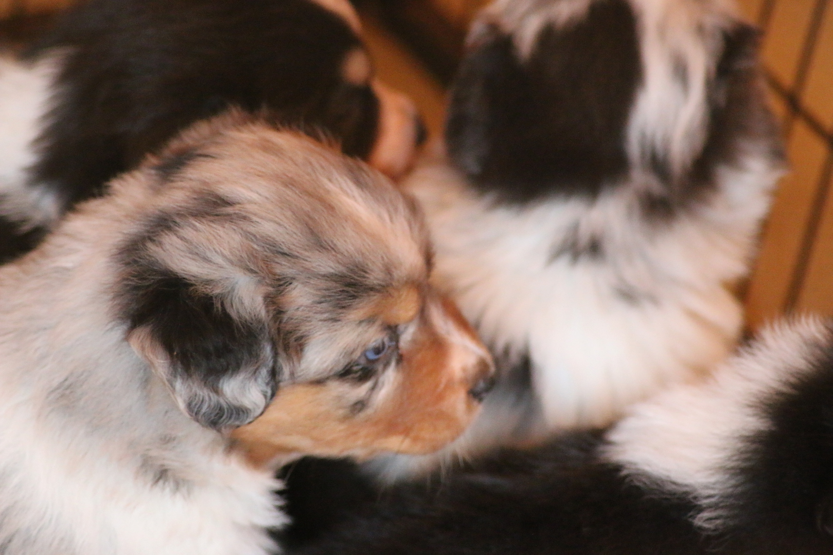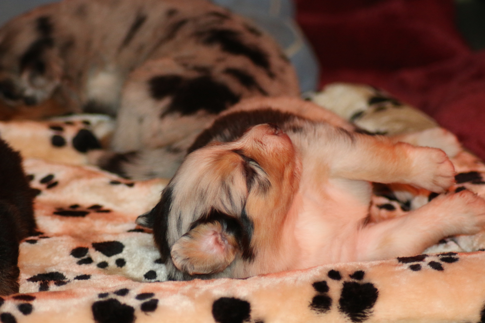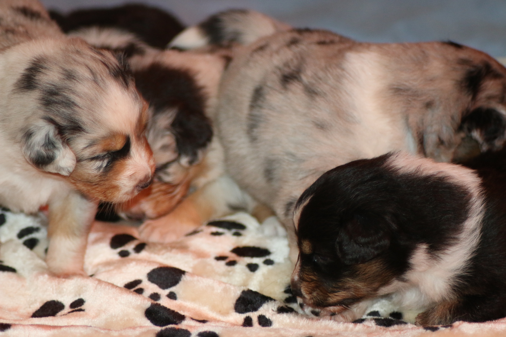 Die Puppys geben schon lustige Geräusche von sich anhand deren man die momentane Stimmung ablesen ups abhören kann, so war da auch schon mal ein kleines bellendes Geräusch zu höhren- zu süß.