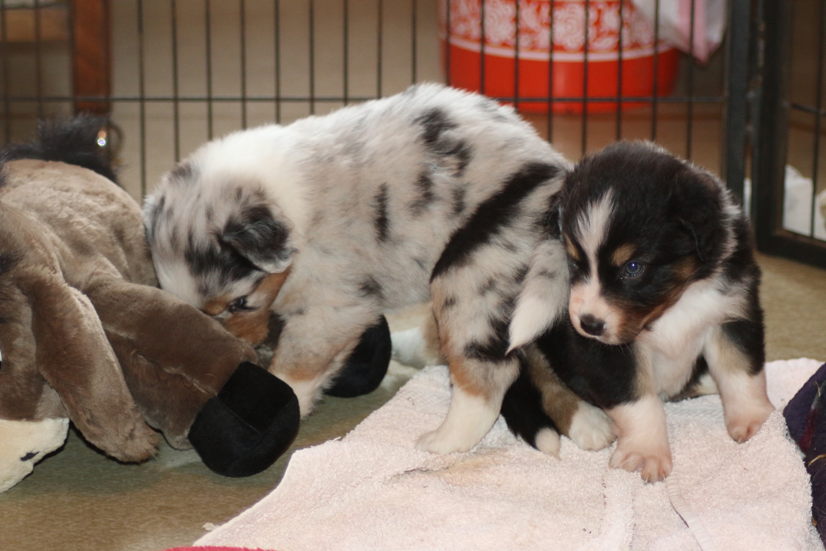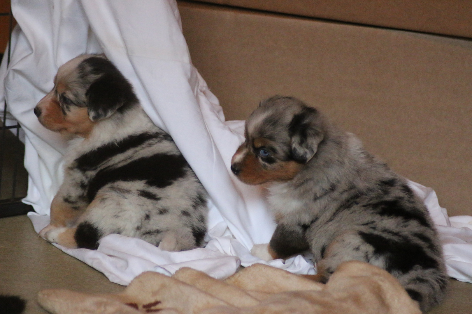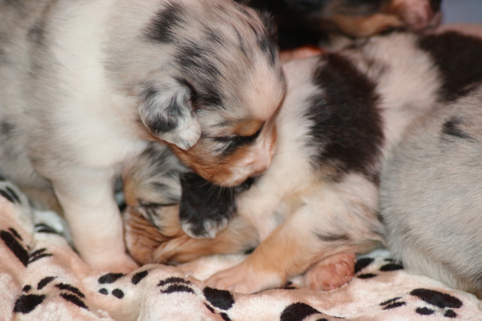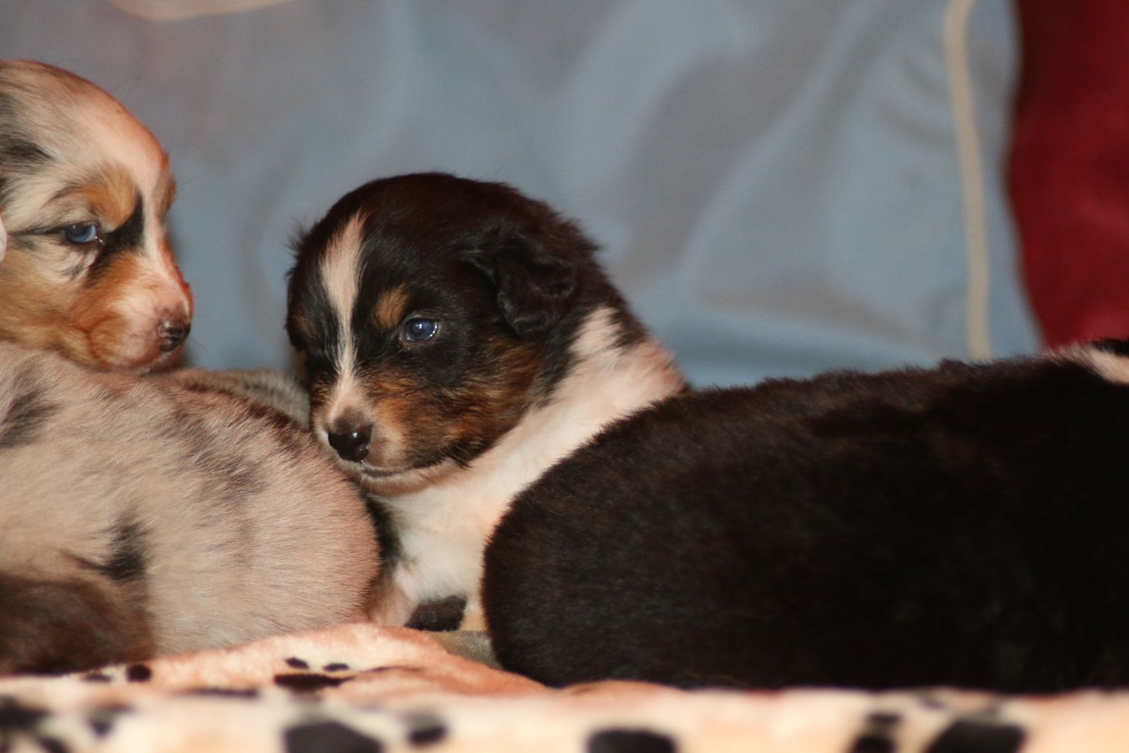 Die Puppys geben schon lustige Geräusche von sich anhand deren man die momentane Stimmung ablesen ups abhören kann, so war da auch schon mal ein kleines bellendes Geräusch zu höhren- zu süß.