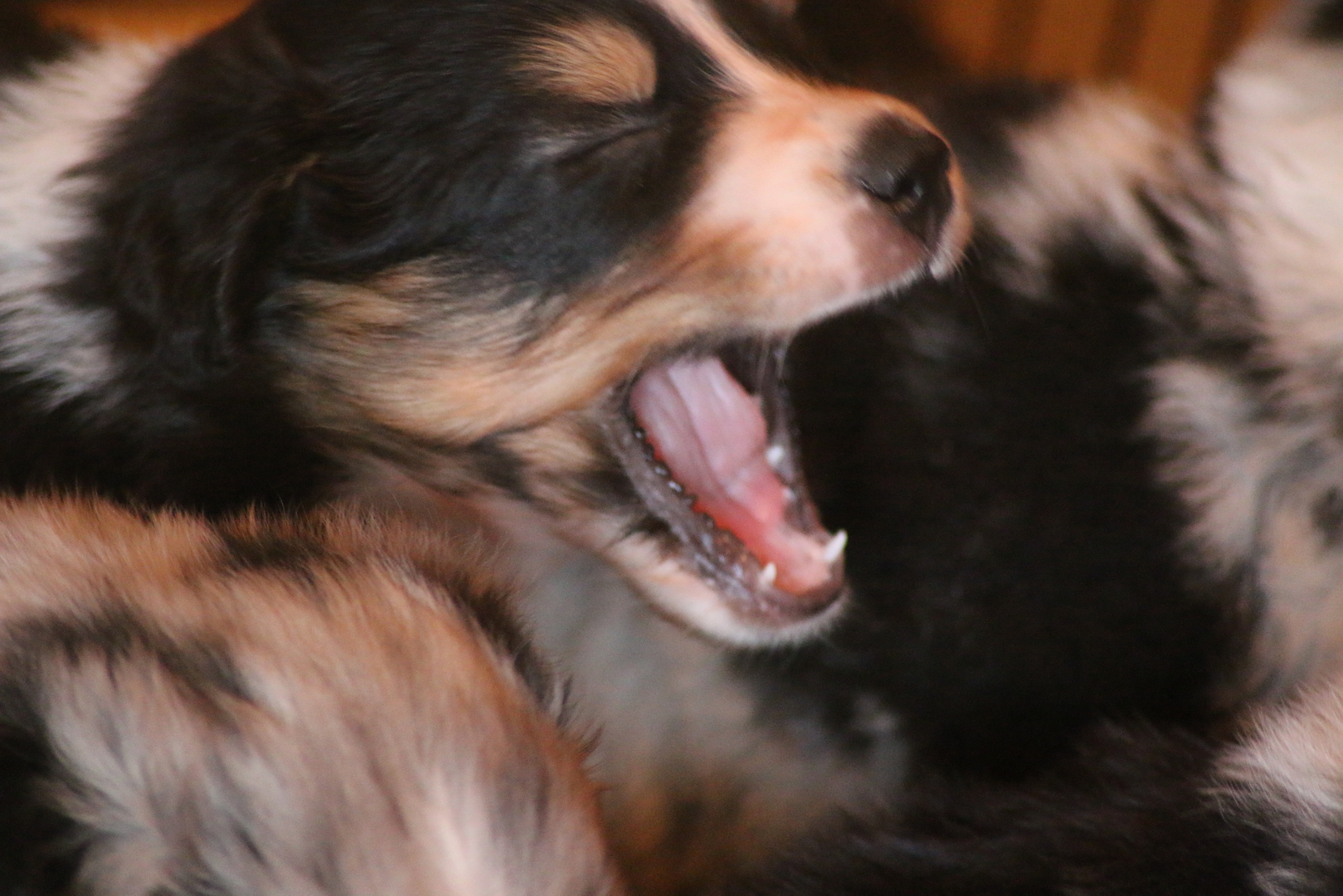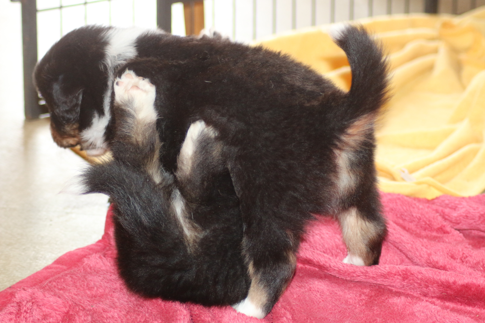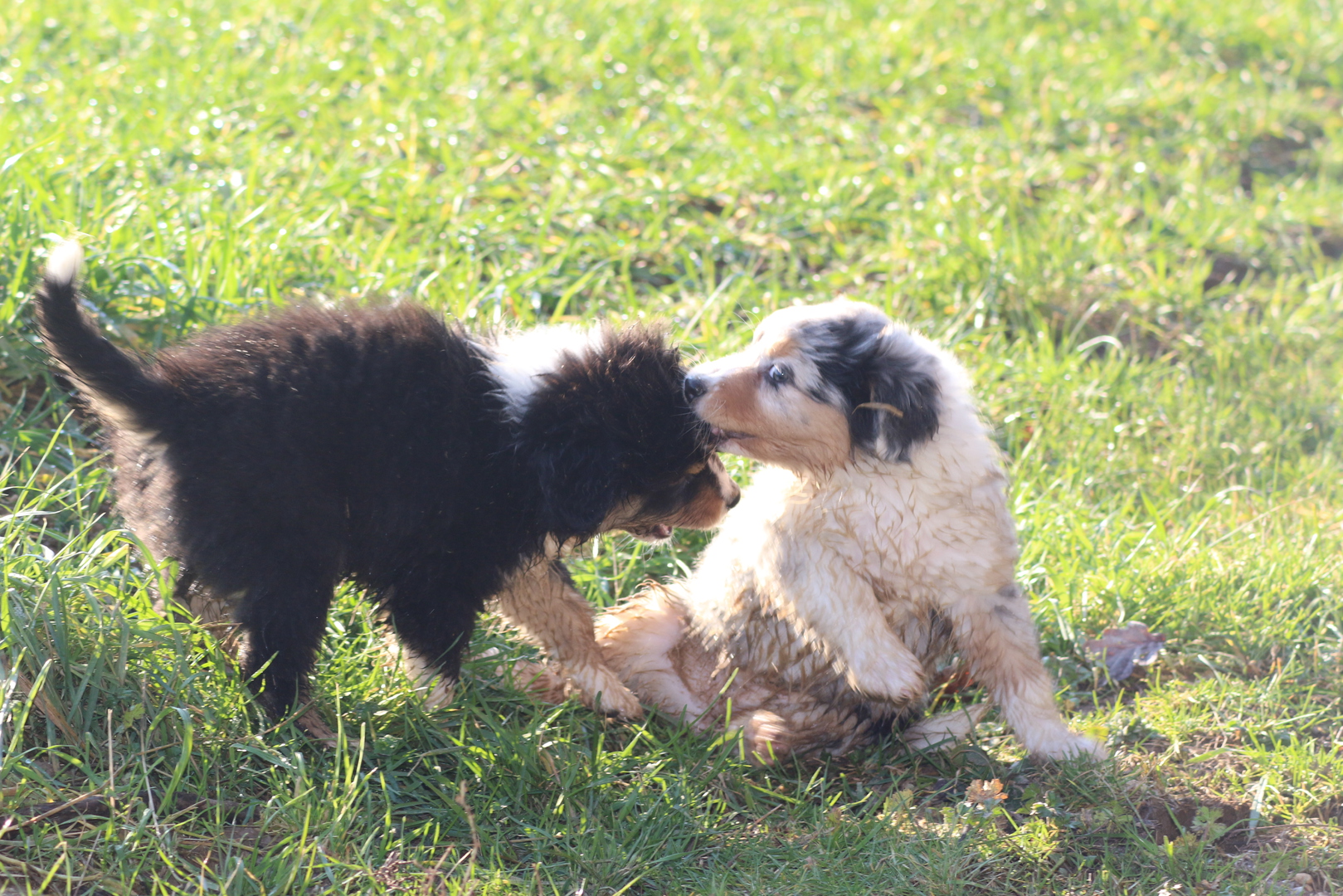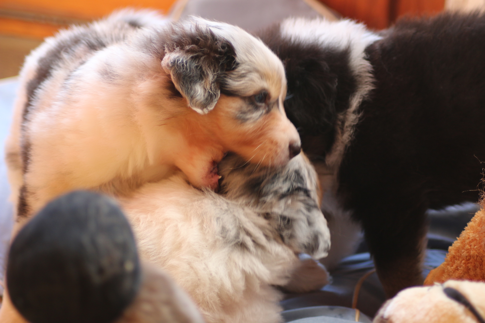 Es wird gerangelt auf den Rücken geschmissen gebissen und zusammen geschmust lach