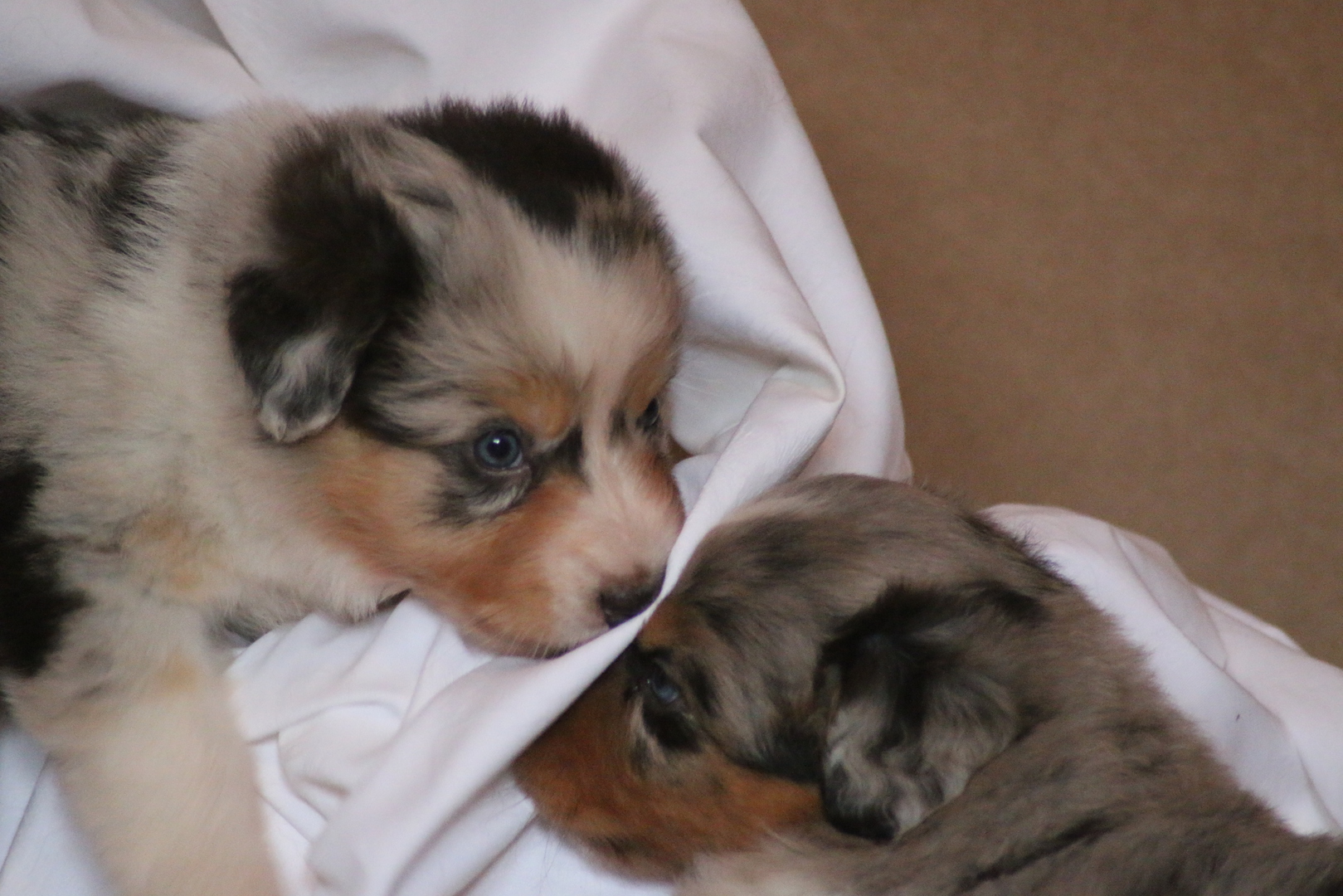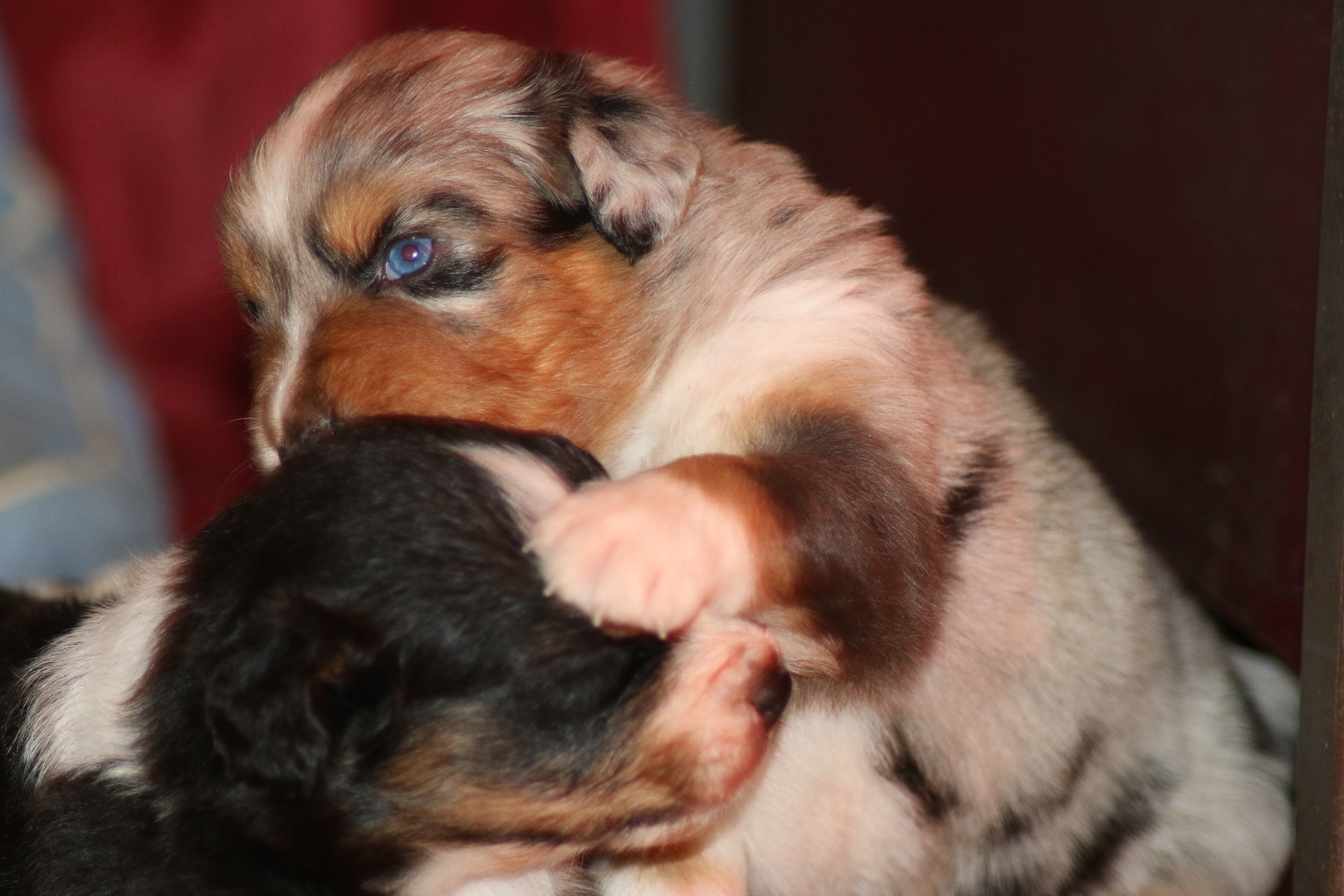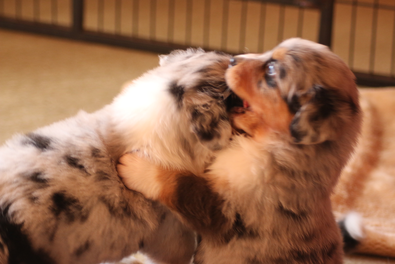 Es wird gerangelt auf den Rücken geschmissen gebissen und zusammen geschmust lach