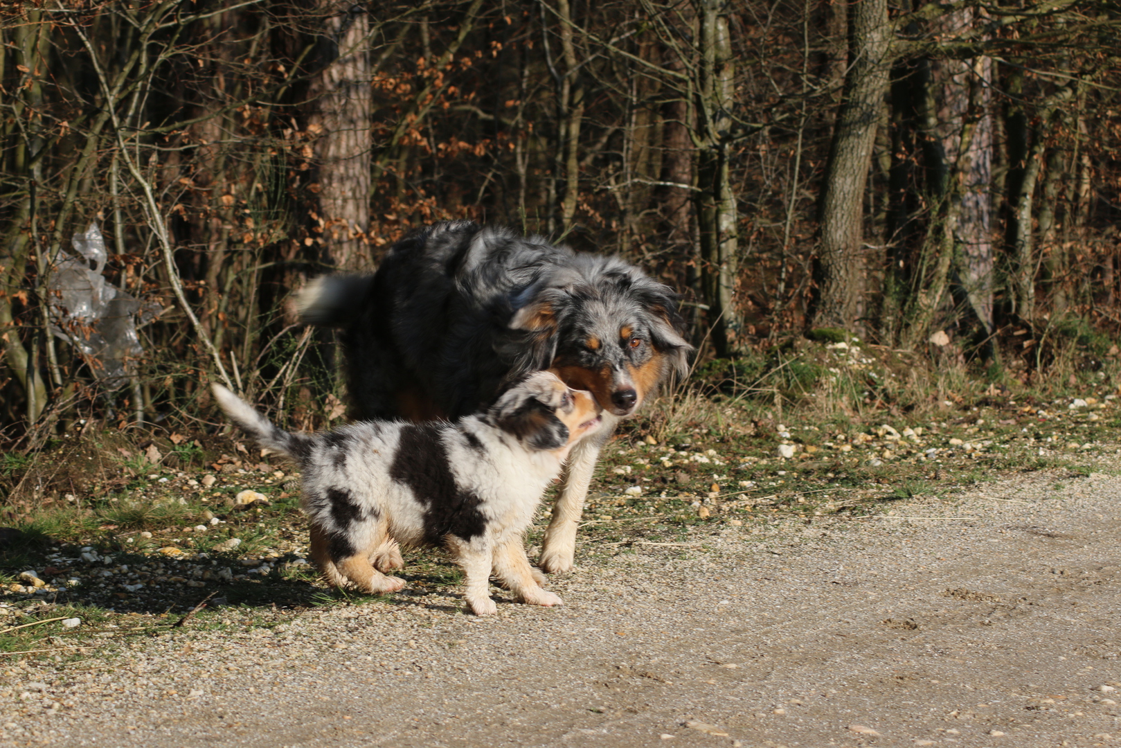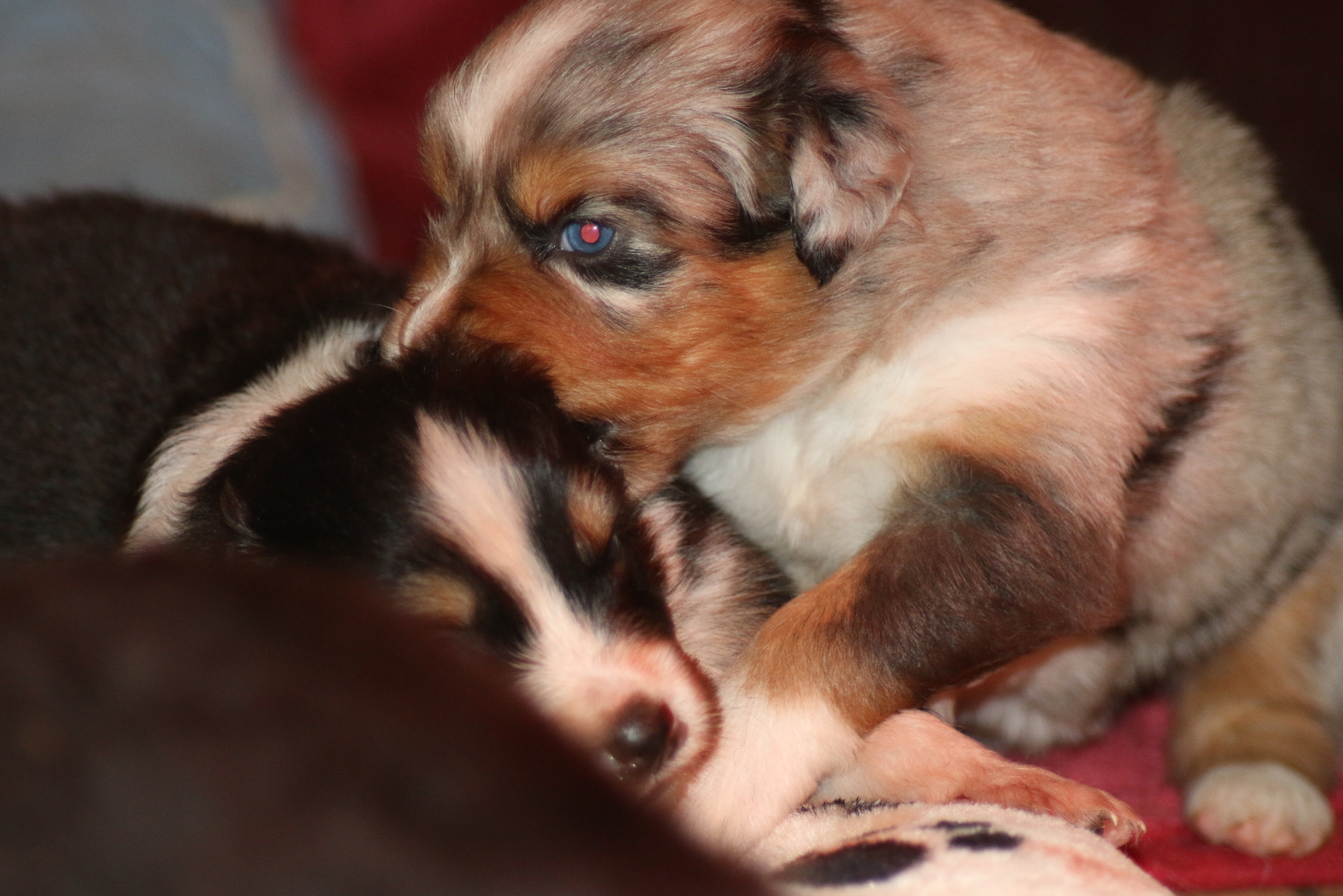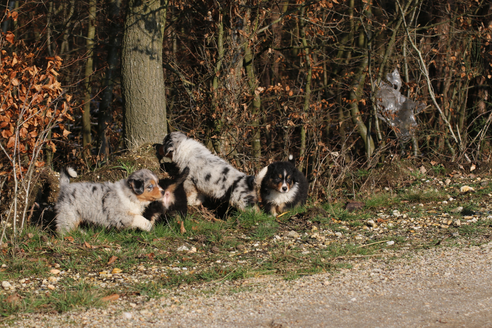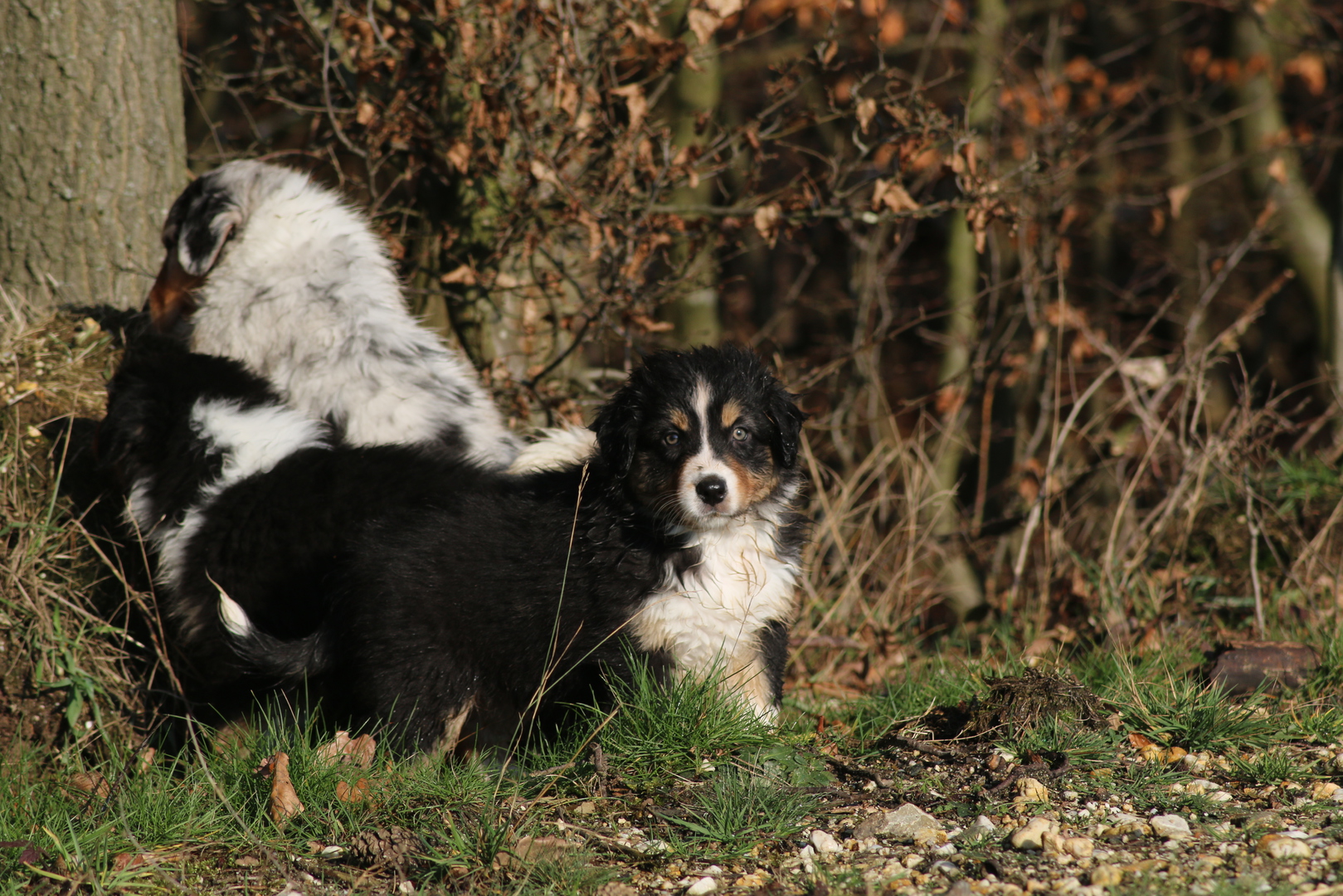 Es wird gerangelt auf den Rücken geschmissen gebissen und zusammen geschmust lach