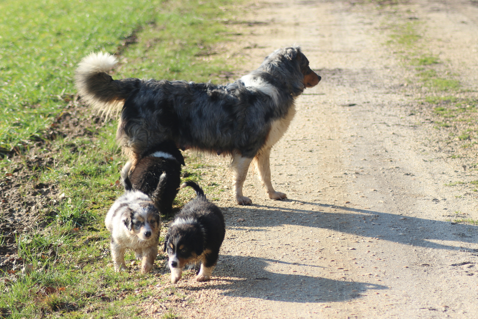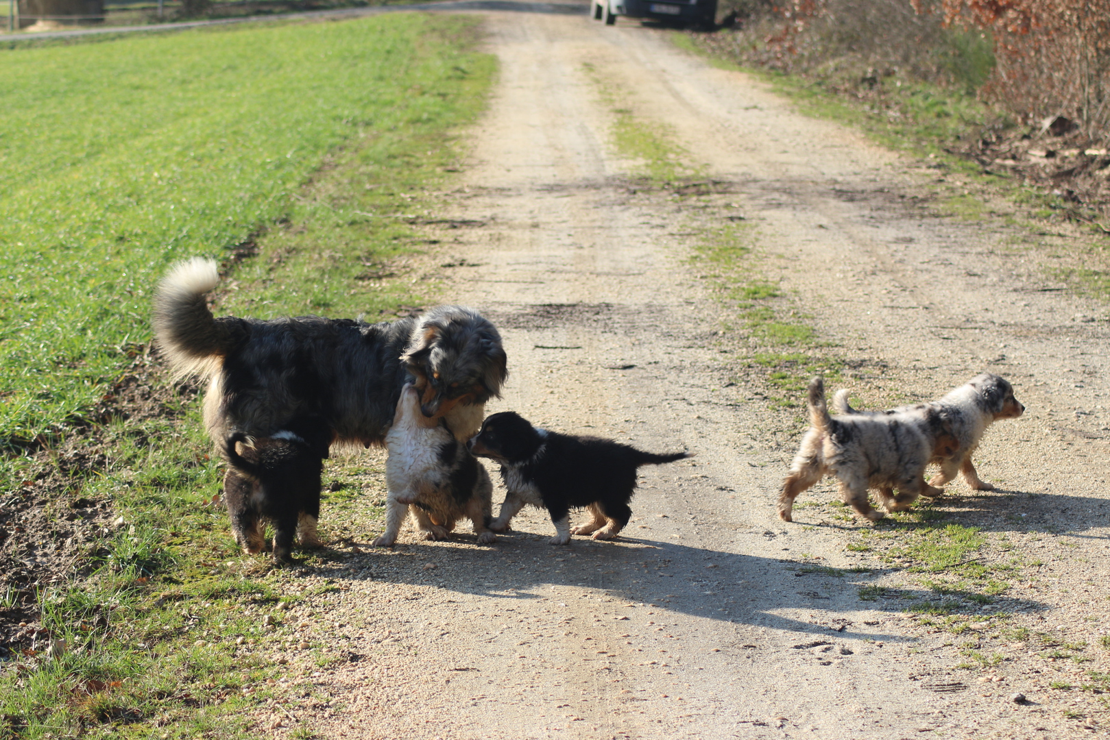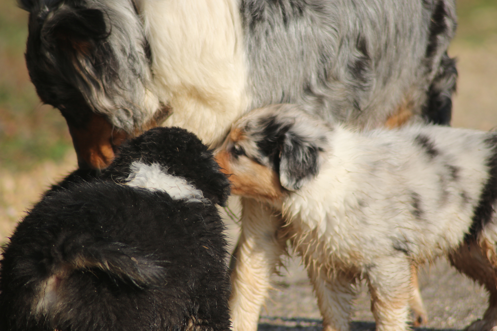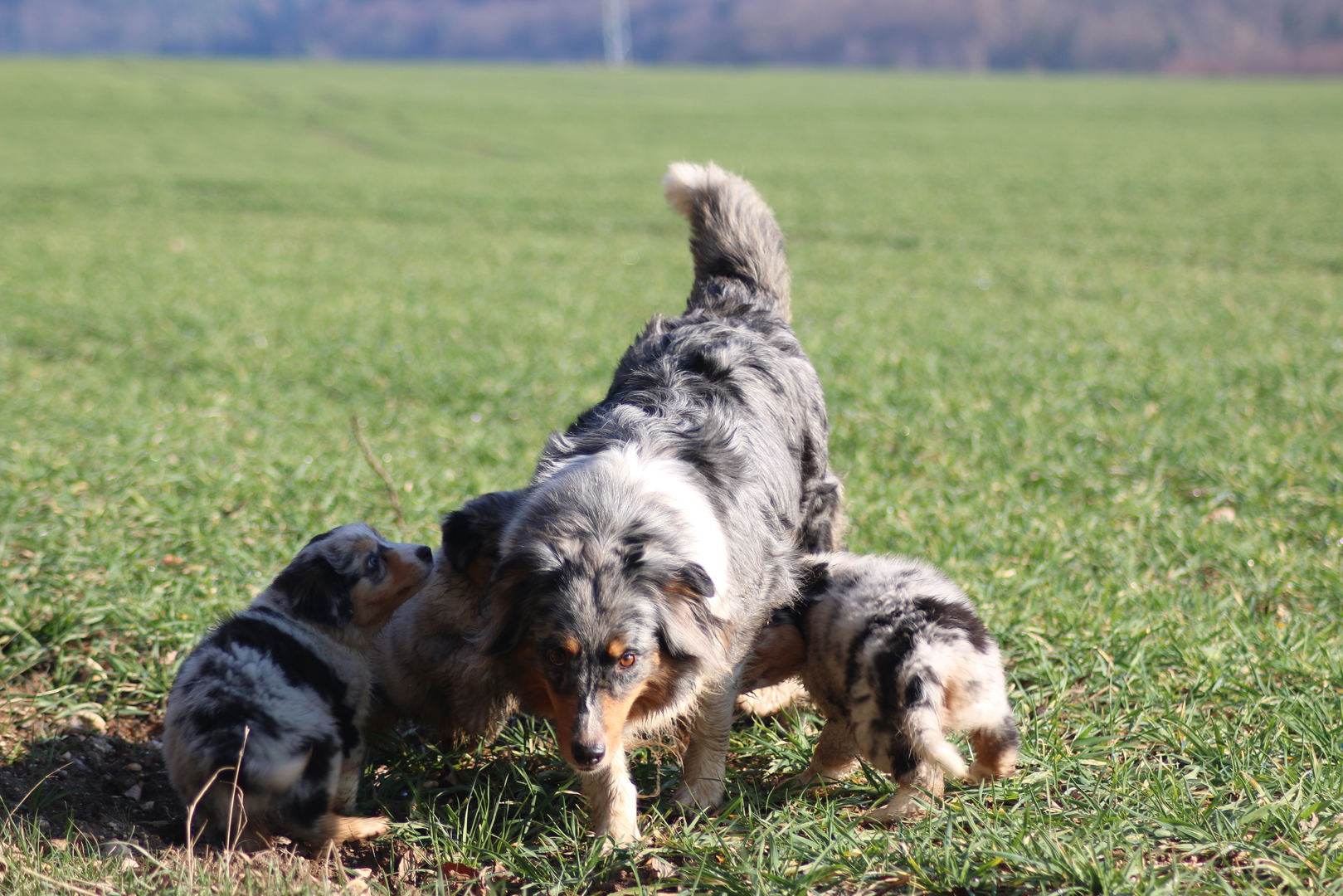 Alle anderen Hundis finden den Nachwuchs Klasse und unsere Jungschlümpe stehen immer noch staunend vor der Kiste und fragen sich wohl wann man mit denen denn so richtig spielen kann.....