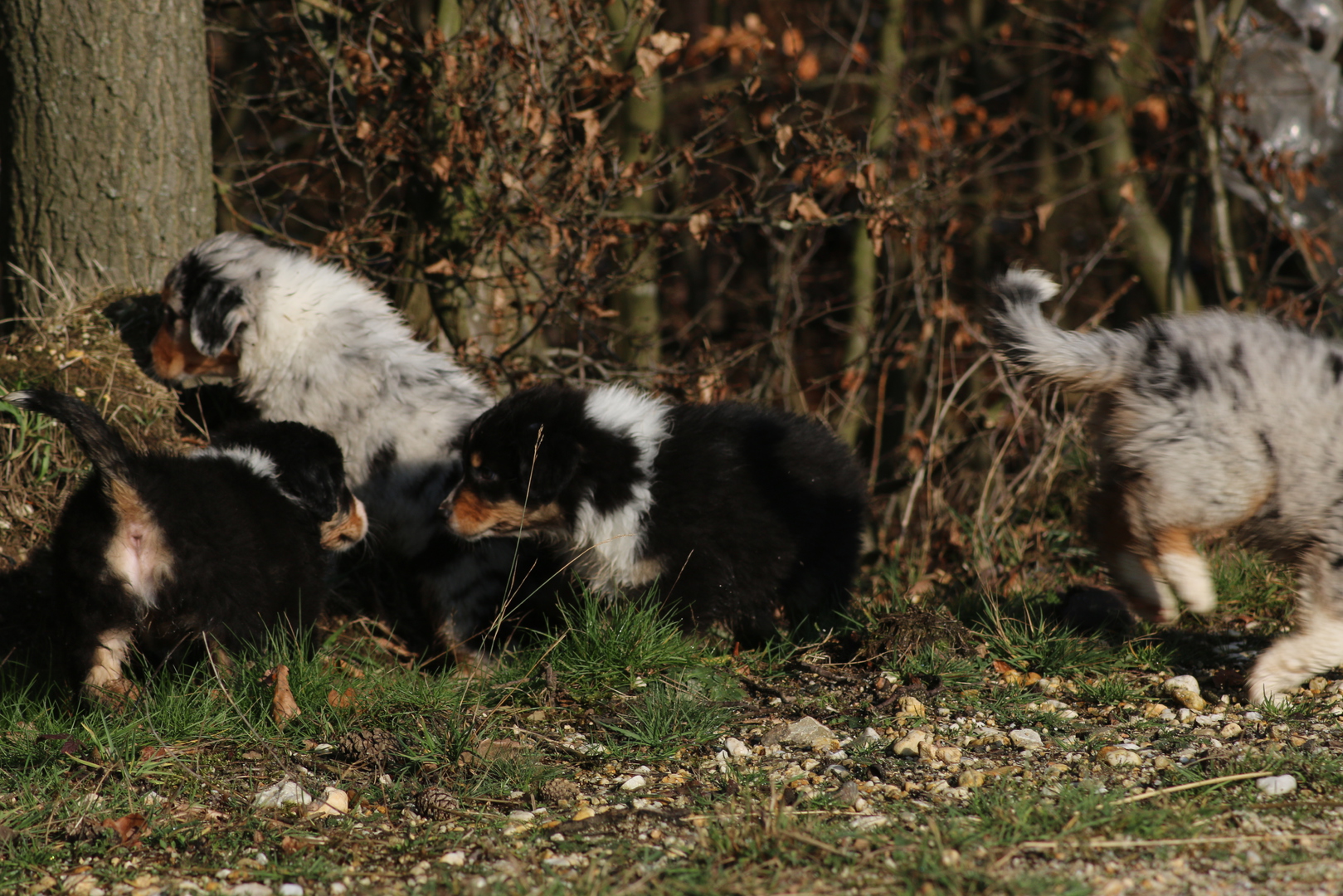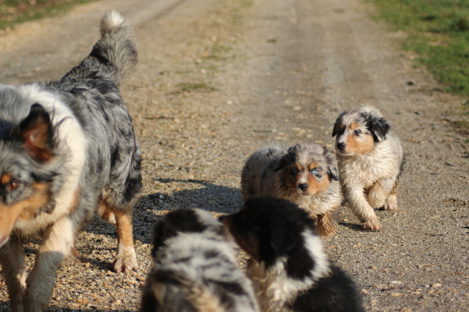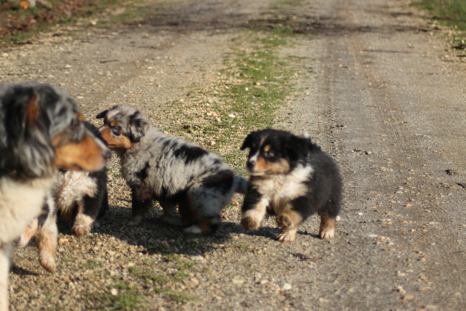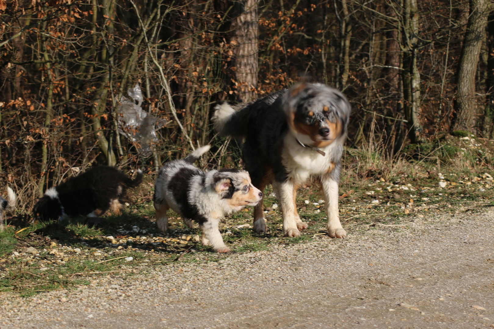 Alle anderen Hundis finden den Nachwuchs Klasse und unsere Jungschlümpe stehen immer noch staunend vor der Kiste und fragen sich wohl wann man mit denen denn so richtig spielen kann.....