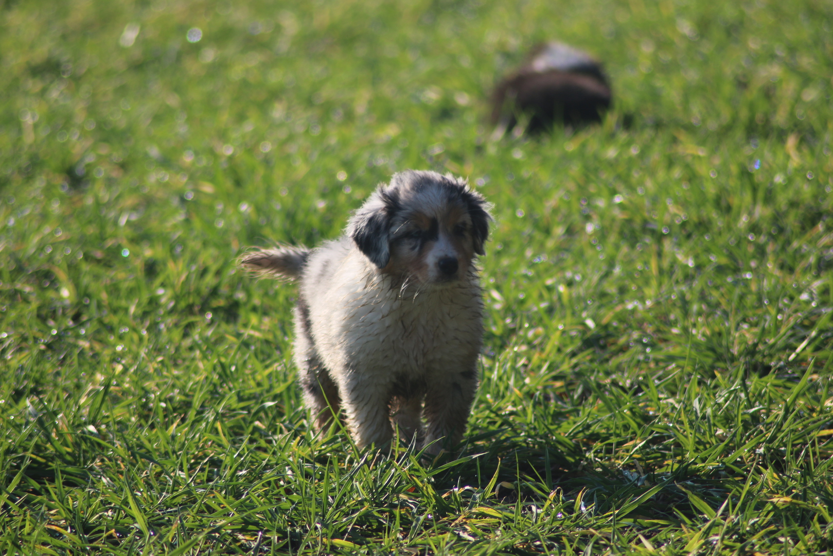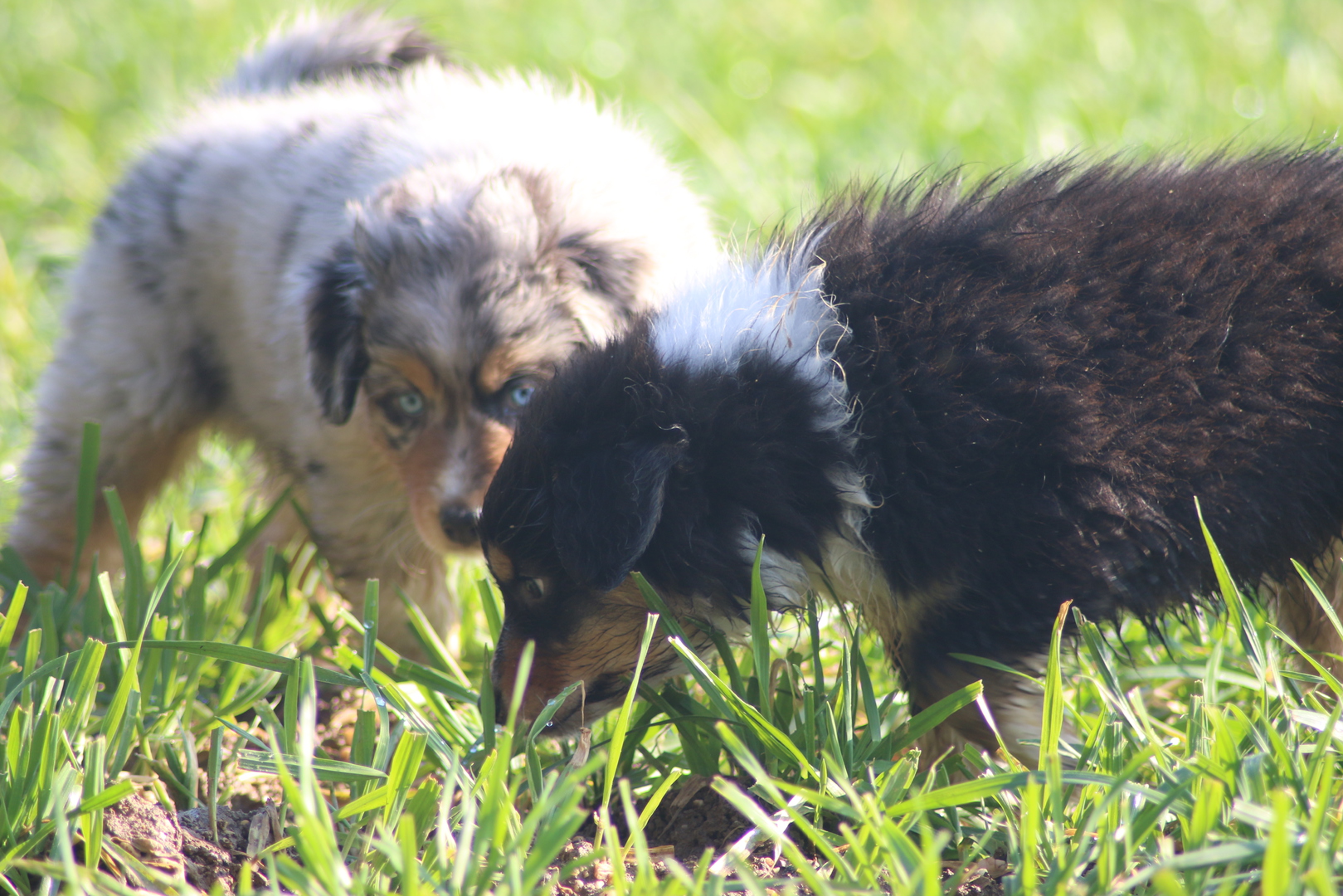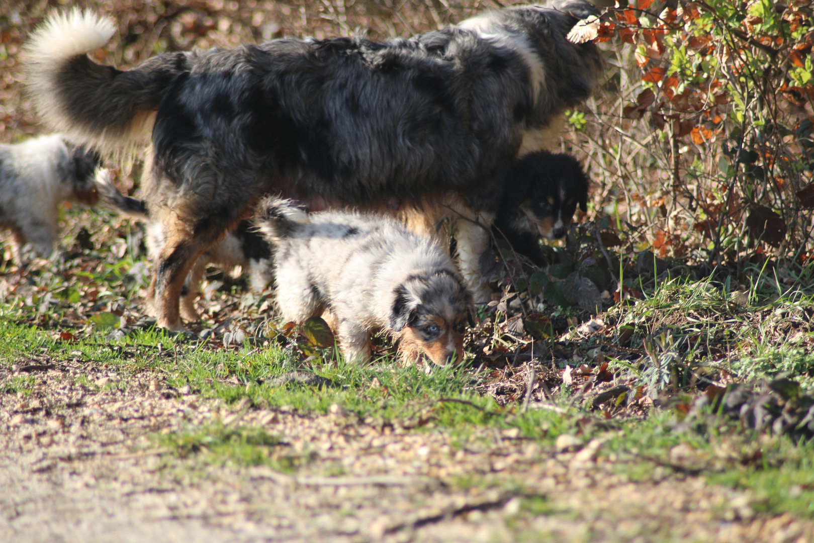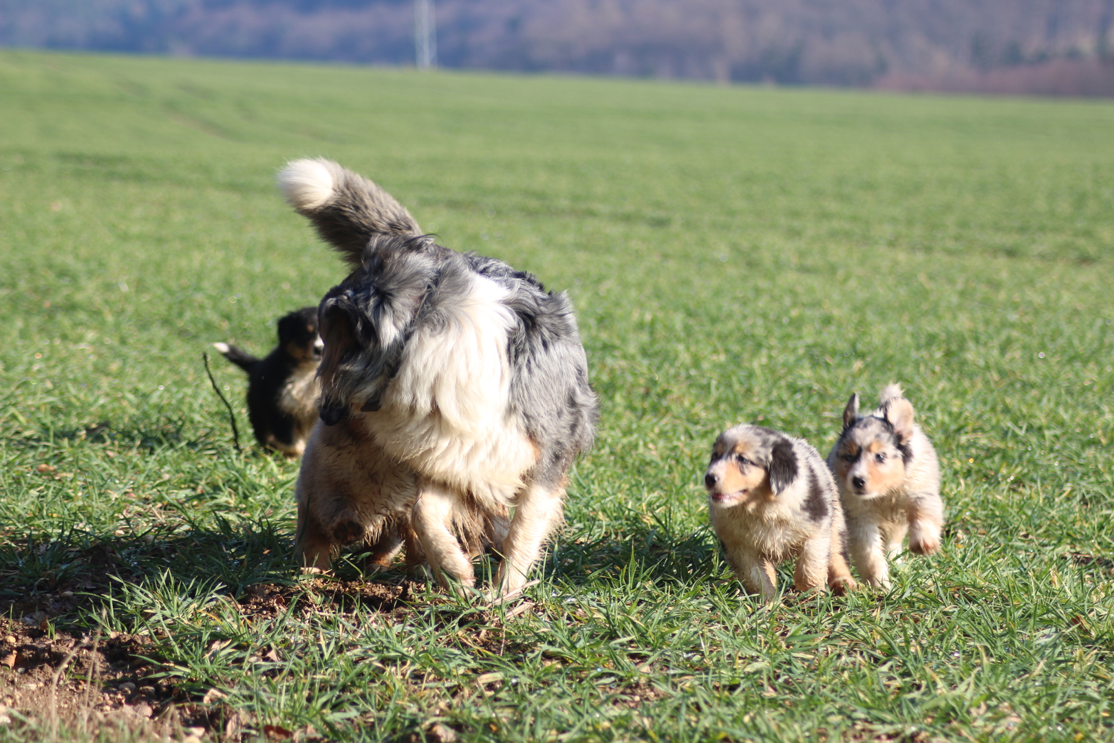 Alle anderen Hundis finden den Nachwuchs Klasse und unsere Jungschlümpe stehen immer noch staunend vor der Kiste und fragen sich wohl wann man mit denen denn so richtig spielen kann.....