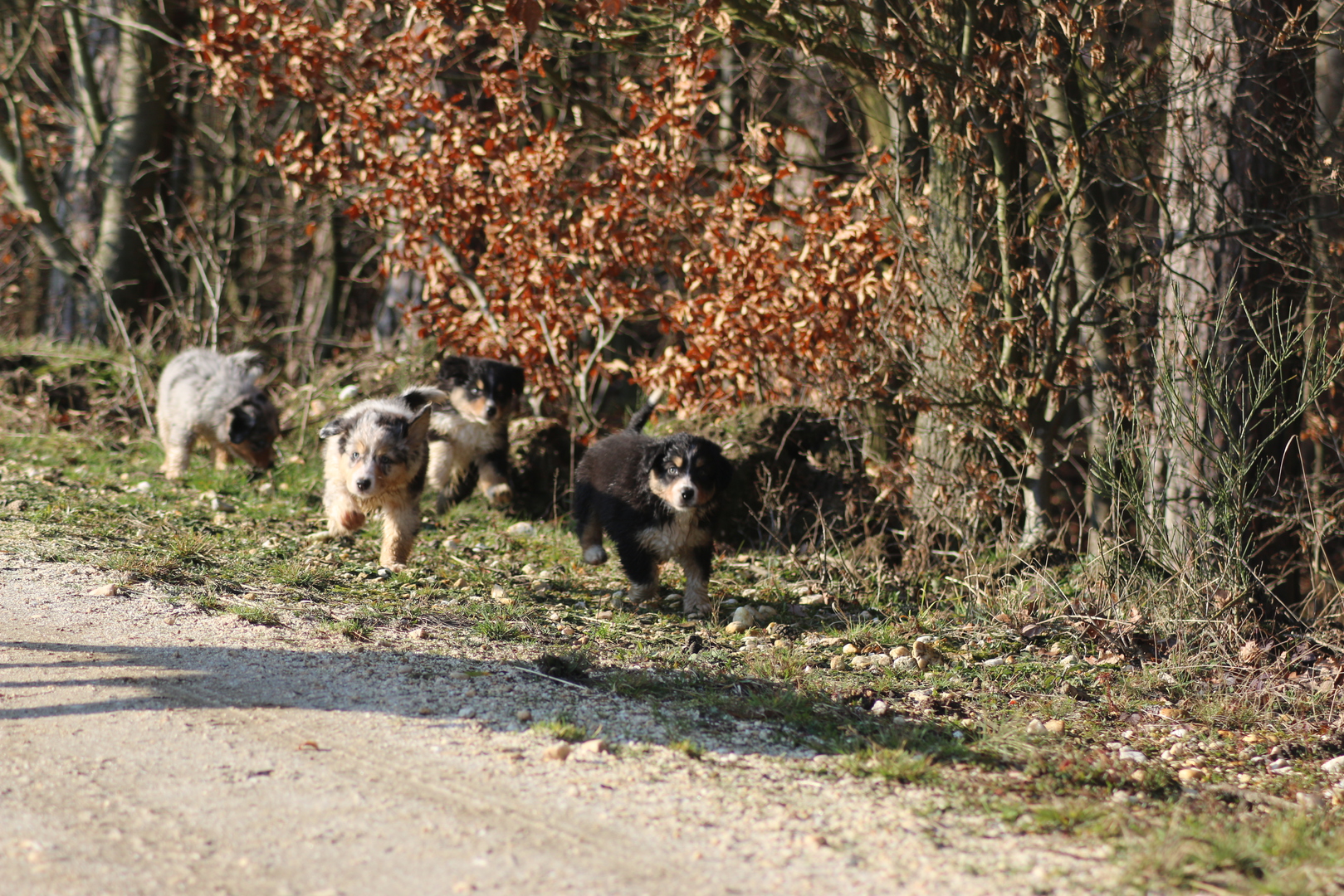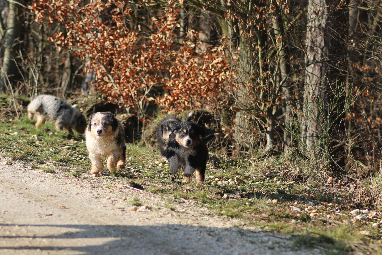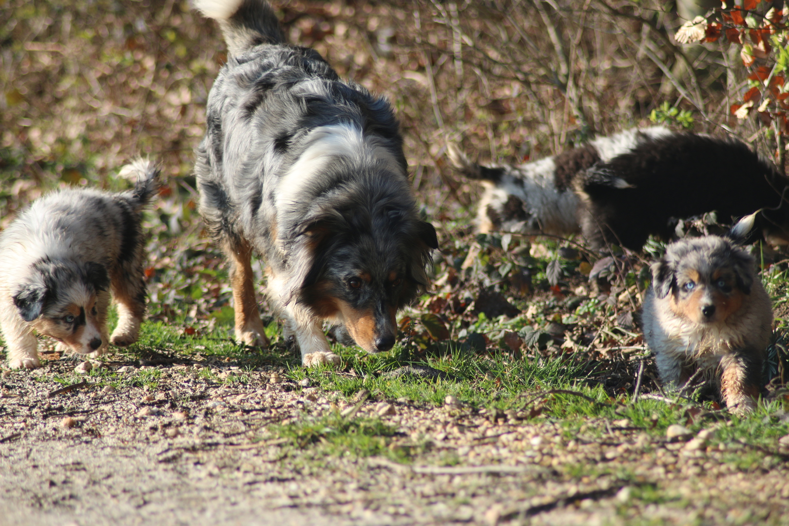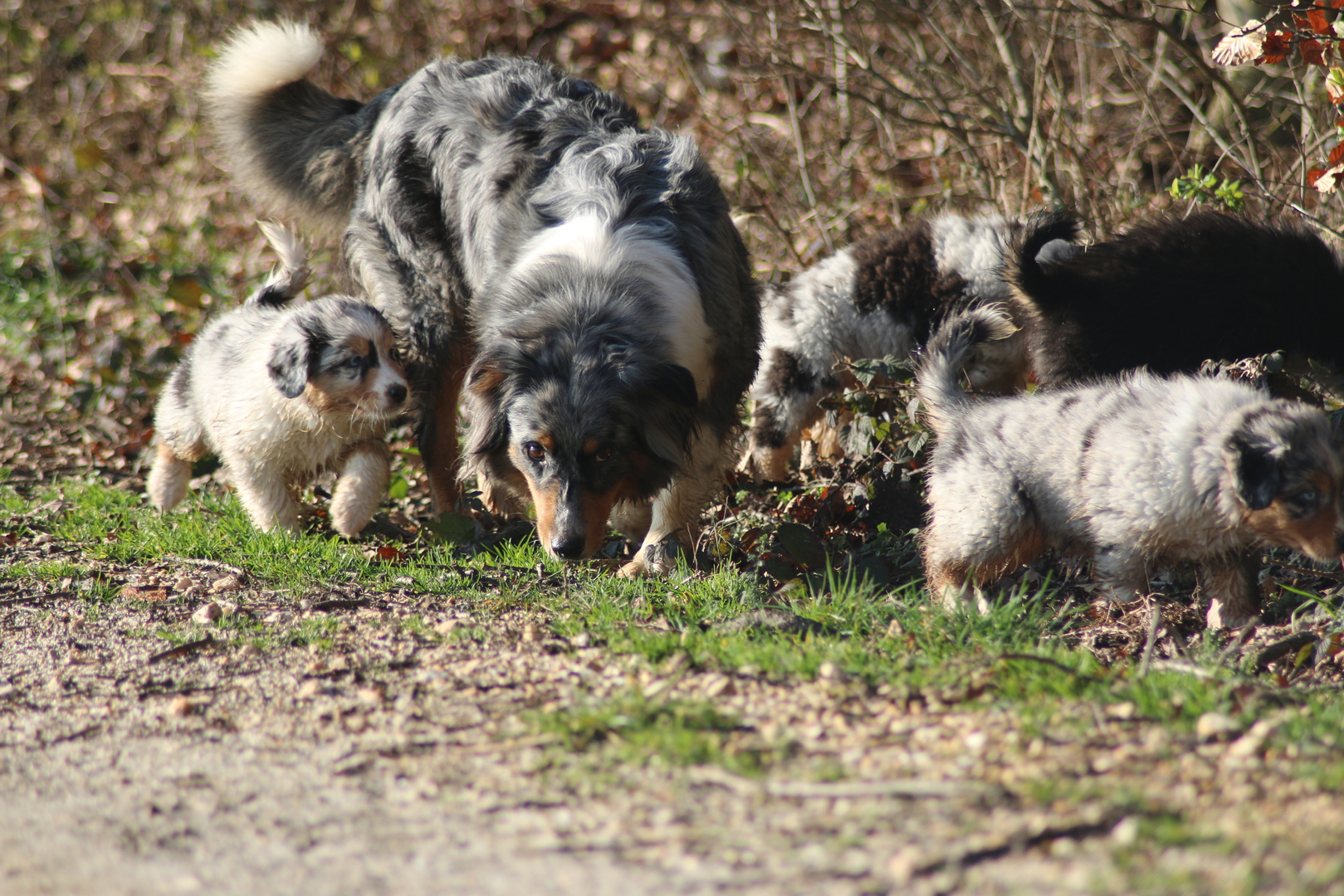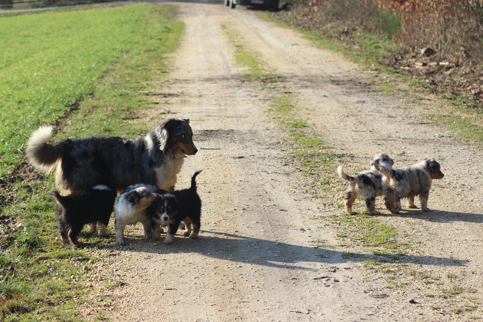 Großer Tag Lach . Heute sind wir nach Aachen gefahren zum Augen Check. Alle Welpen und zusätzlich Blacky, Shandor , Willow und Flocke haben ihe Untesuchung hinter sich und sind fei von vererbbaren Augenerkrankungen . Die Fahrt war super ruhig ich hab mich schon gefragt ob alle Hunde überhaupt eingeladen sind im Auto. Im Untersuchungsraum sind dann alle fleissig rumgerannt und haben alles neugierig ohne Angst und irgendwelchr Furcht untersucht ( die Welpen die großen natürlich gesittet an der Leine nachdem die Kleinen fertig waren), das dann jemand noch in die Augen schaut mit so einem merkwürdigen Licht, war ihnen vollkommen ergal . Dann gings wieder in die Transportbox per Shuttle ( kleiner Gepäckwagen) ins Auto und dort : Funkstille wieder ganz ruhig auf der Heimfahrt . Toll der Charakter spricht mal wieder Bände .....