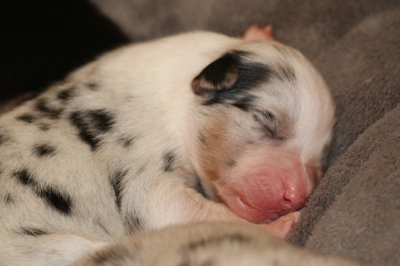 Am Anfang in der 1. Lebenswoche sind die Kleinen ja ständig in der Wurfkiste und die Mamis weichen nur kurz zum Fressen und für mal kurz raus von ihren Puppys.