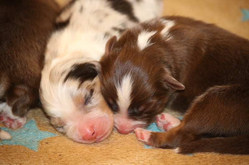 Die Kleinen haben seit der letzen Woche die Augen auf. Und laufen schon recht munter durch die Wurfkiste. Die erste Wurmkur ist schon erledigt und seit gestern wird auch schon dazugefüttert. Die nächsten Wochen werden nun richtig spannend wenn man die Entwicklung der Einzelnen nun besser verfolgen kann.